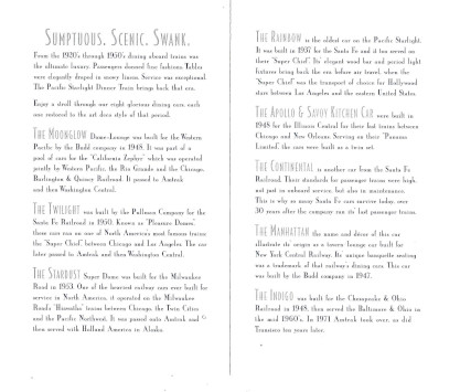 The inside of the handout giving general information about the history of the equipment that made up this dinner train.