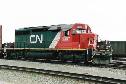 On the same day, Canadian National SD40-2 5387 was wandering around the coal terminal.