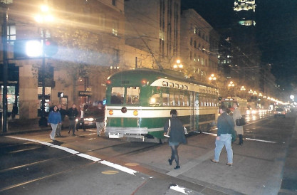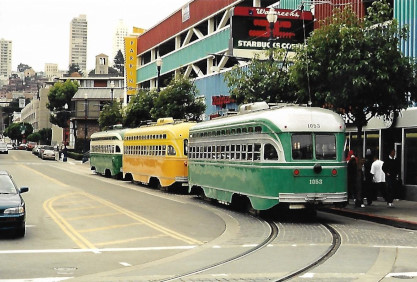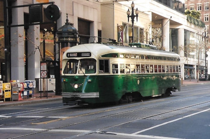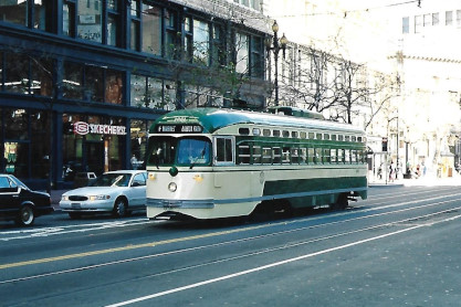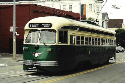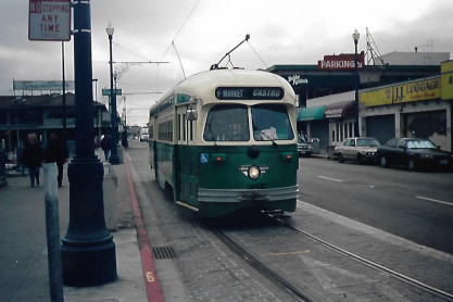 Market Street RailwayIt was founded in 1976 by three transit preservationists to preserve a vintage Municipal Railway trolley bus that was about to be scrapped. Since then, Market Street Railway has grown to have more than 1,000 members from San Francisco, the Bay Area and throughout the world. Our organization's advocacy was key to turning the Trolley Festivals into a full-time historic streetcar line, named the F-Market, in 1995. Continued advocacy led to the F-line being extended along The Embarcadero and its many piers to reach Fisherman's Wharf in March 2000. The line was then appropriately renamed the F-Market & Wharves line.