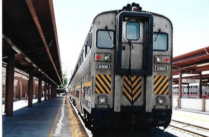 Amtrak California cab car 8308 "Mount San Gorgonio" at San Jose's Diridon Station, named after former Santa Clara County Supervisor Rod Diridon.