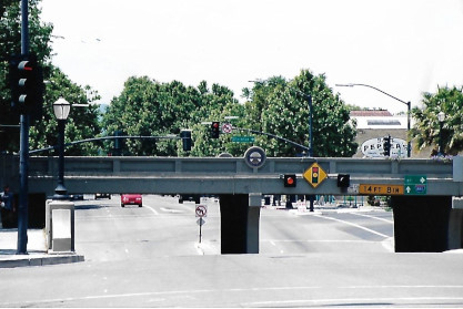 The Southern Pacific sunset emblem on the bridge over 22nd Street.