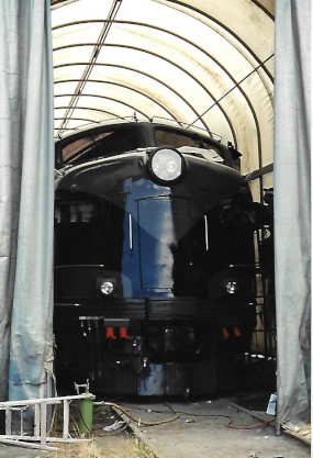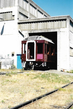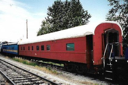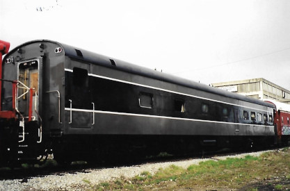 The SRY shops also do work on passenger cars. On July 14th, 2000, this unidentified coach was undergoing restoration.