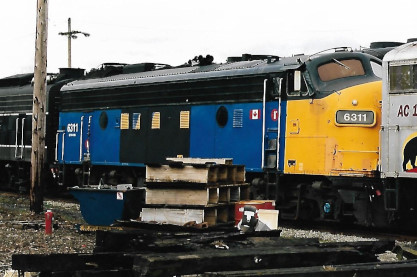 VIA FP9A 6311, ex. VIA 6529, nee CN 6529 was found on January 25th, 2004. Photograph by Bob Alkire.