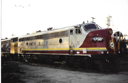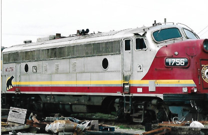 A rare find "out west" was Algoma Central FP7 1756, ex AC 1756 2002, exx. VIA 6553 1995, exxx. VIA 1404 1980, exxxx. CP 1404, nee CP 1403 1954 on November 9th, 2003. It had been sold to the West Coast Railway Association museum in Squamish, British Columbia.