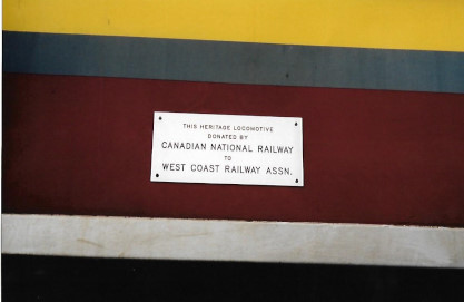 The donation plaque on WCRA FP7 1756 (ex AC 1756 2002, exx. VIA 6553 1995, exxx. VIA 1404 1980, exxxx. CP 1404, nee CP 1403 1954). I had not seen such a plaque before or since.