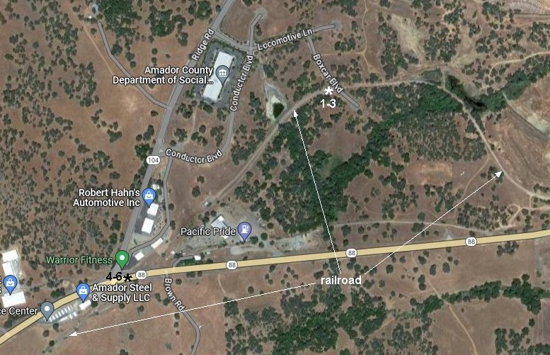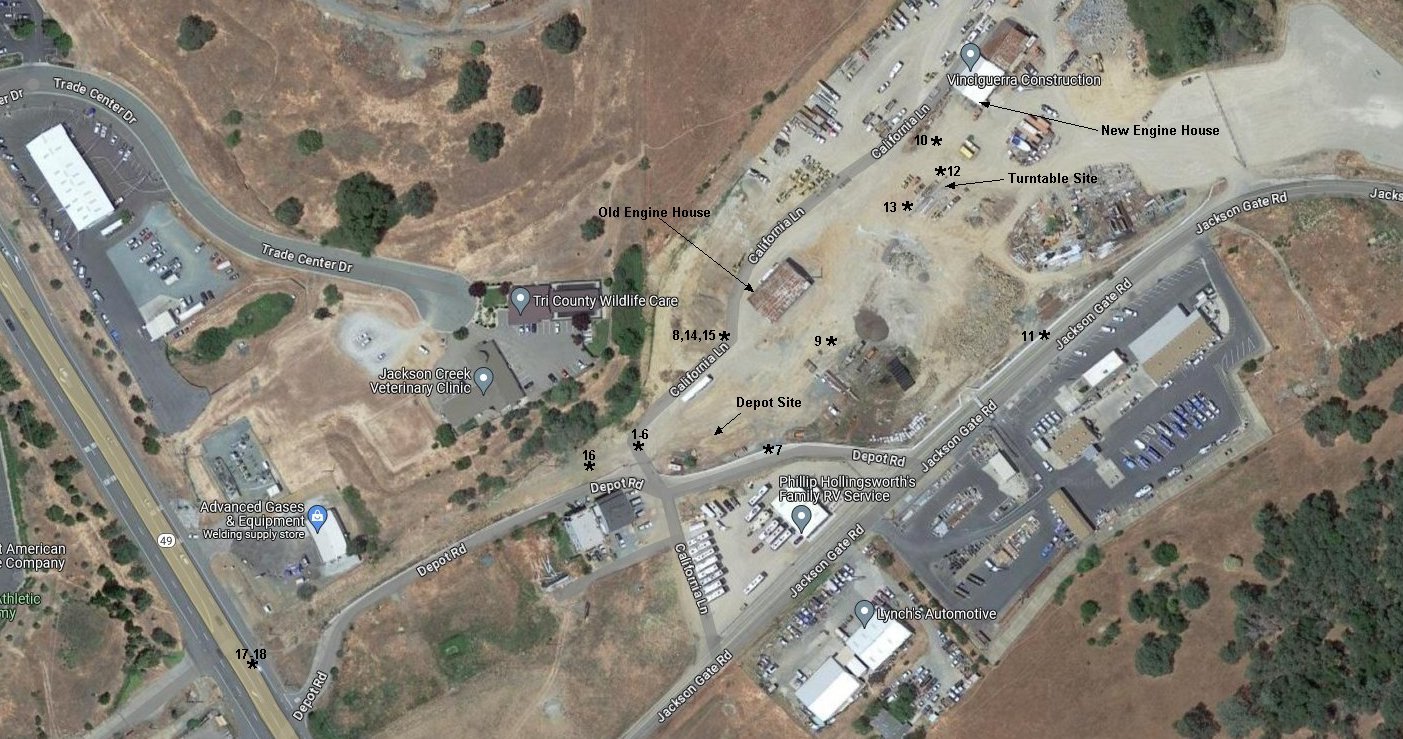 1. Location at the wye of the water tank and sanding towers. The Amador Central depot sat just across the rails.