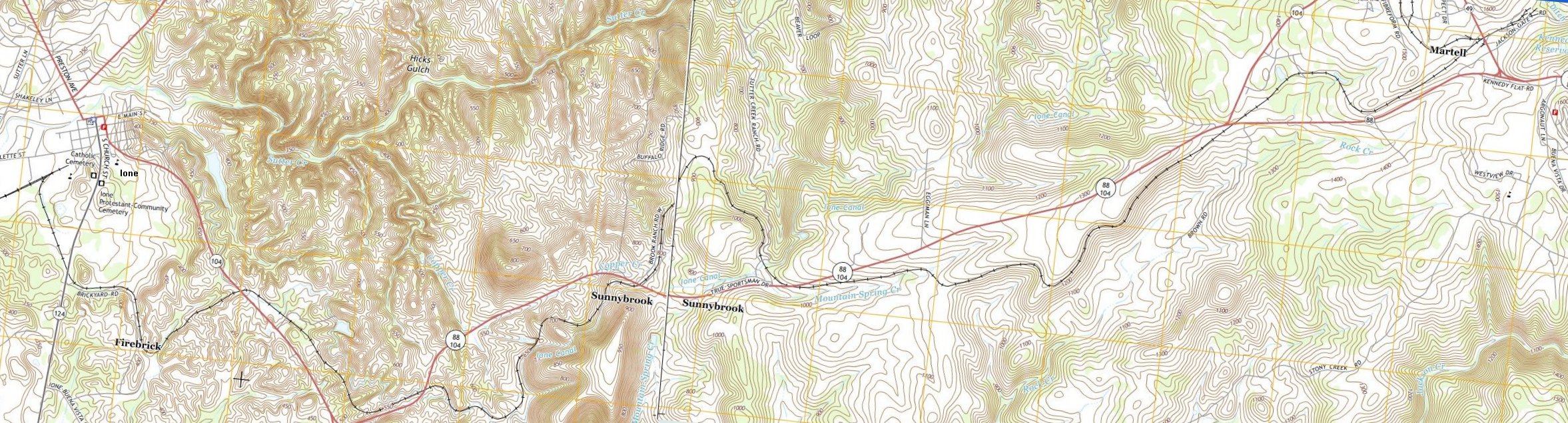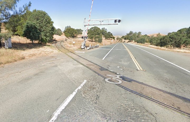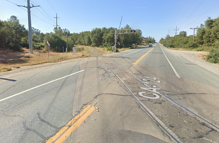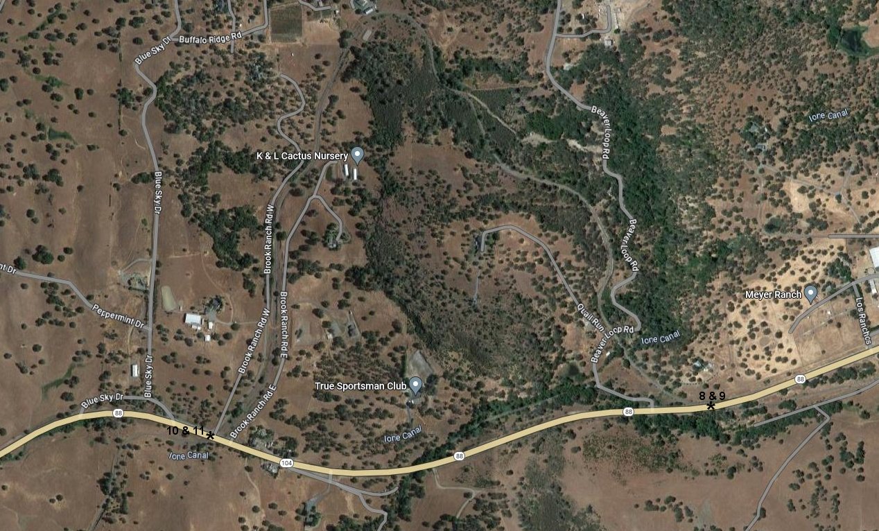 10.-11. The third grade crossing of Hwy 88/104 at Sunnybrook with image 10 looking towards Martell while image 11 looks towards Ione. (both images are Google Streetview)