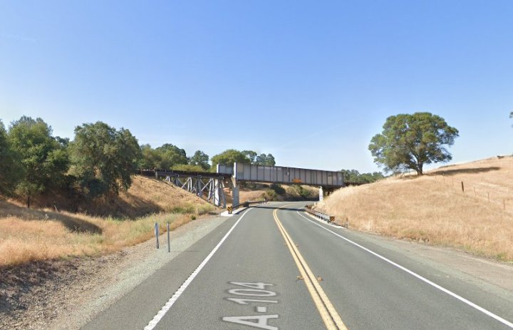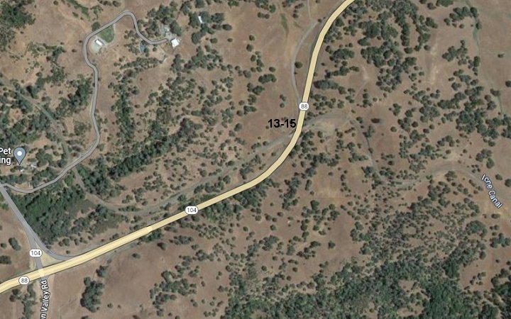 13.-14. Google street view images of the fourth and final crossing of Hwy 88/104. The Amador Central utilized a bridge here.