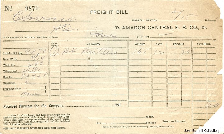 4. An Amador Central freight bill from 1911. (John Barnhill Collection)