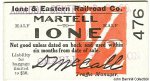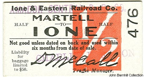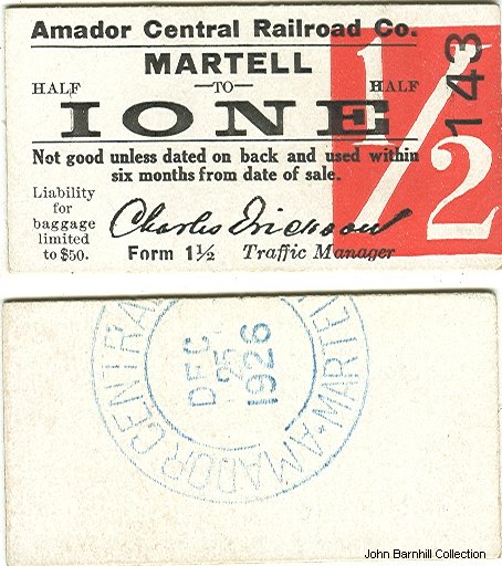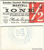 1. Ione & Eastern ticket stub. Note the Amador Central stamp over the railroad name. (John Barnhill Collection)