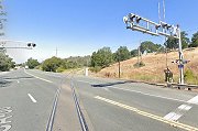 5.-6. 2022 Google street view images of the same crossing. 5 looks eastward. 6 looks downgrade towards Ione.