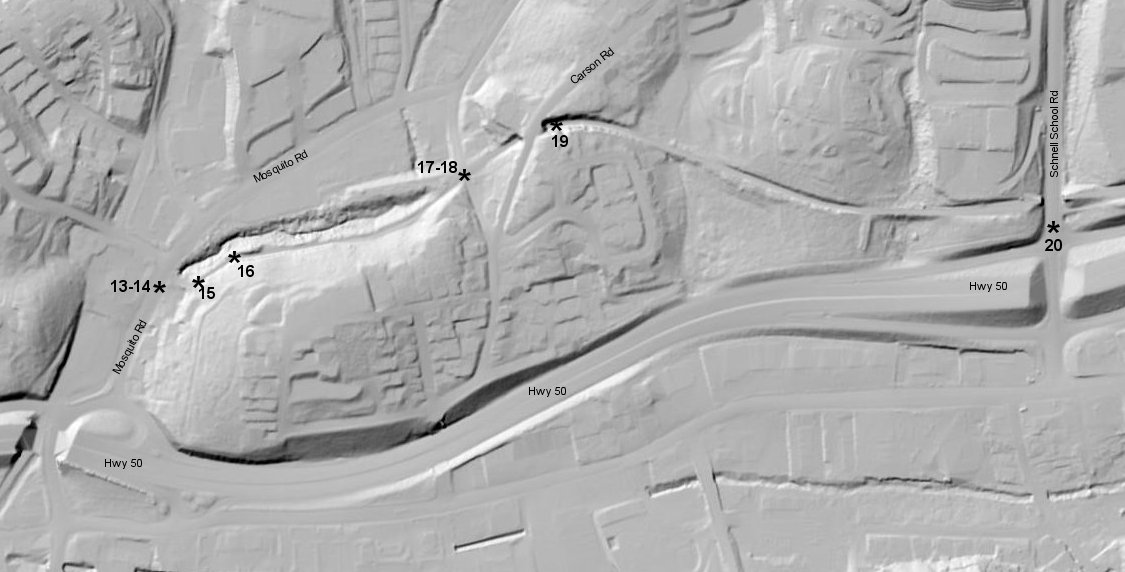 Google satellite and USGS Lidar images of Camino, CA marked with the above image locations.