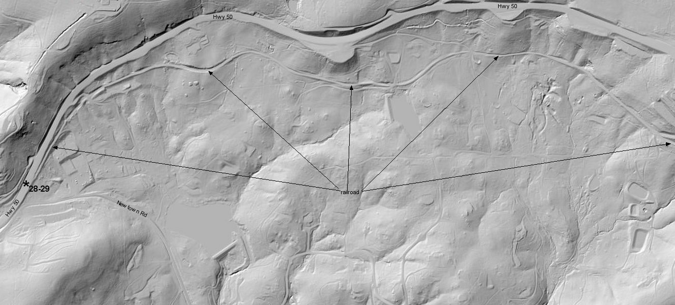 Google satellite and USGS Lidar images showing the railroad between image 20 above and image 21 below.
