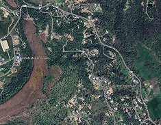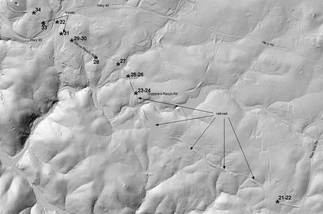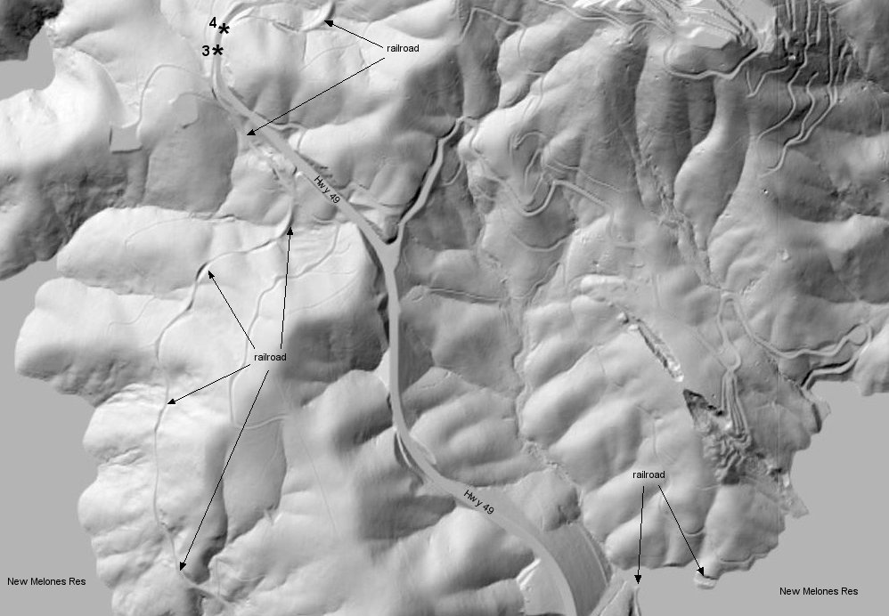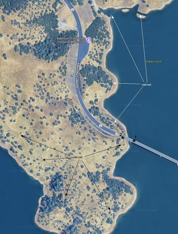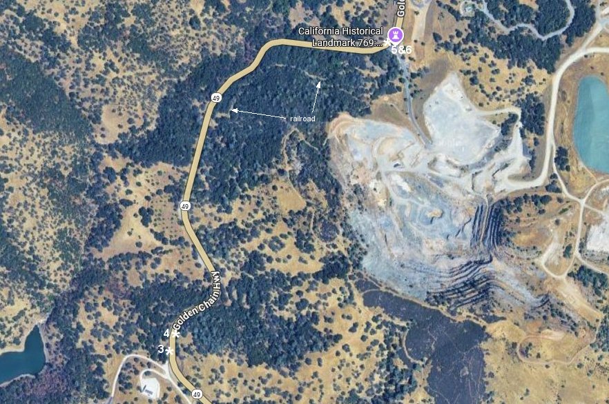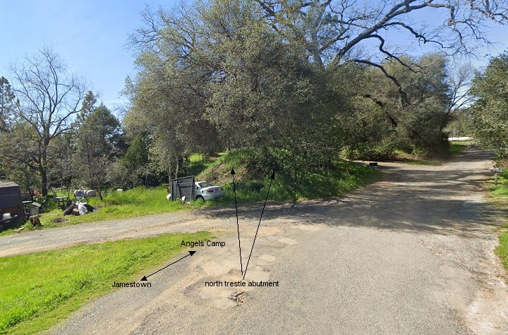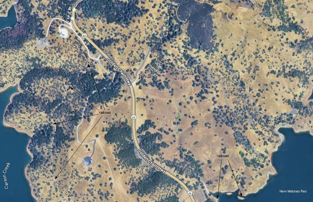 At the lake, the line used two switchbacks to descend into the canyon for its crossing of the Stanislaus River and two more to ascend the other side.