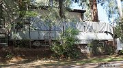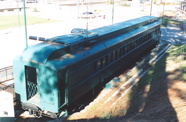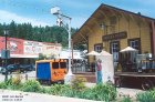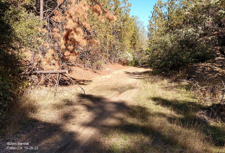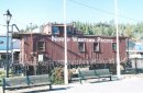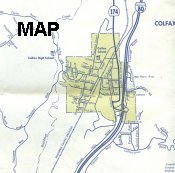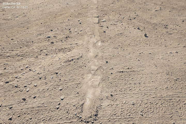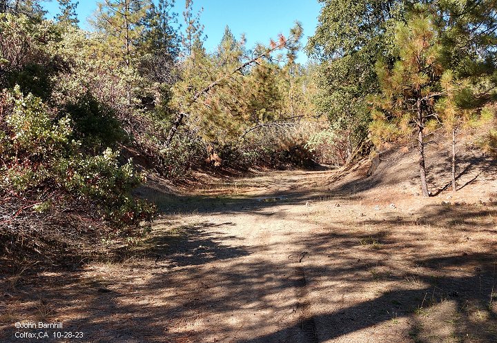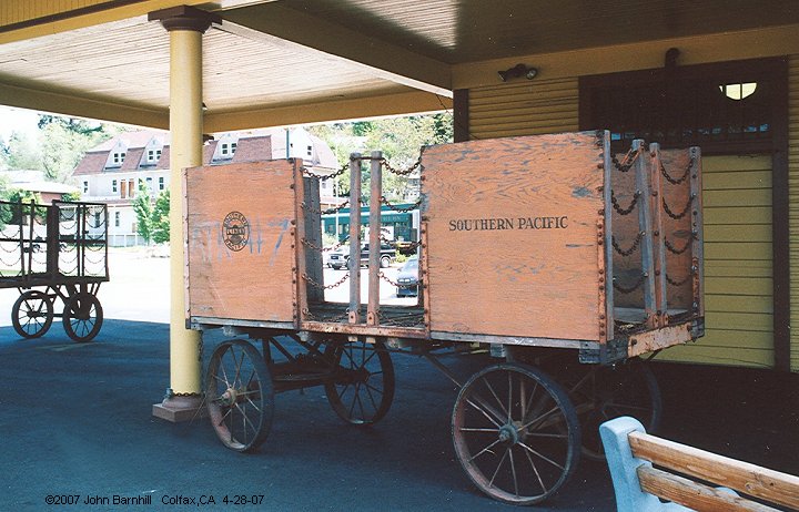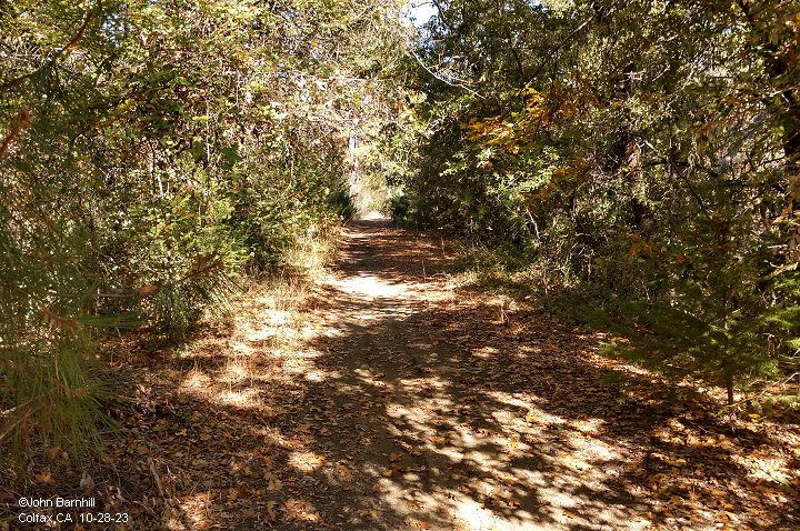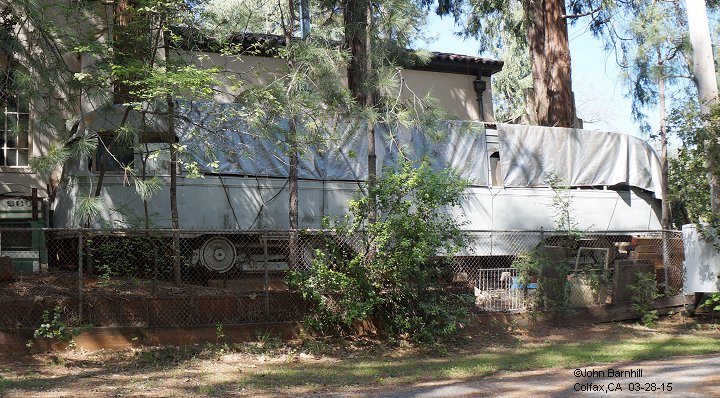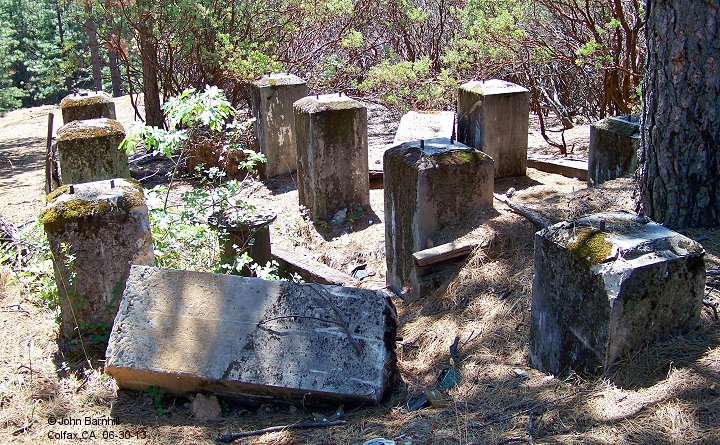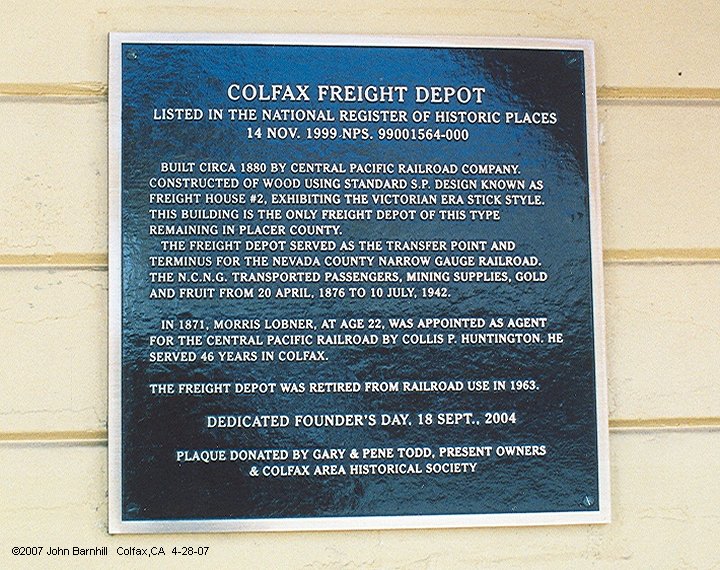Southern Pacific once based helper locomotives in Colfax and built a seven stall enginehouse near the wye to service them. Only two footings for the walls remain.