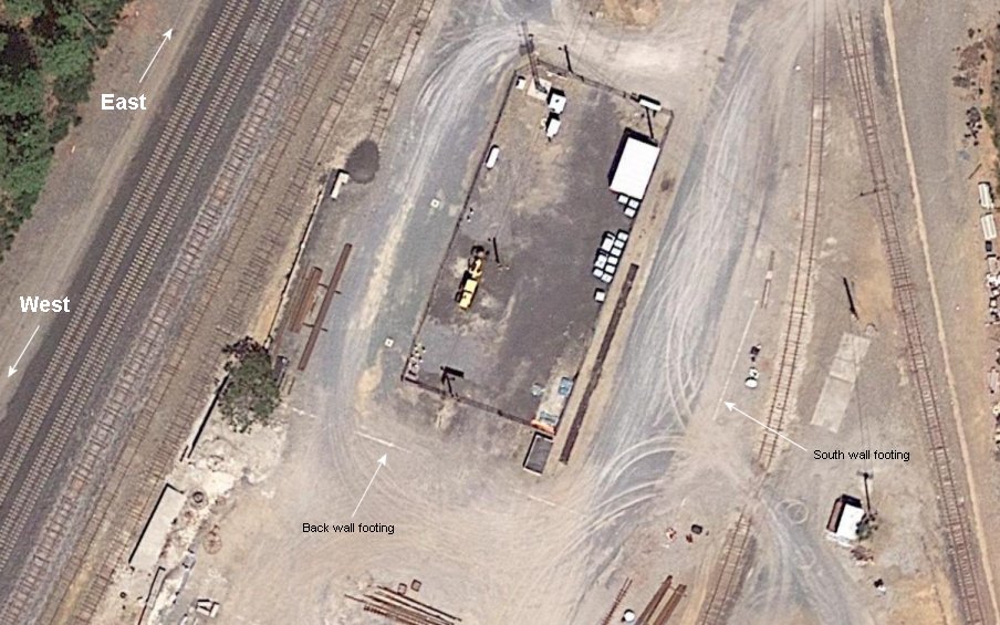 1. Google aerial image showing the back wall and east wall footings.![]() |