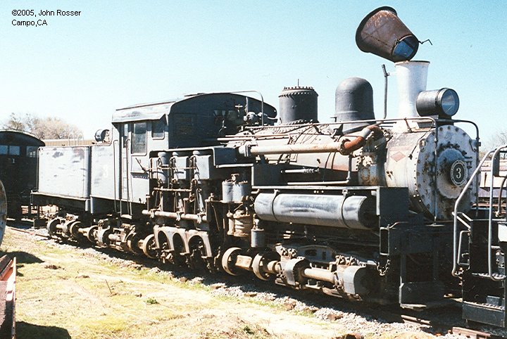 | #3 | Shay 3tr | Lima | #3221 | 1923 | ex Feather River Pine Mills #3, nee Hutchinson Lmbr #3 |