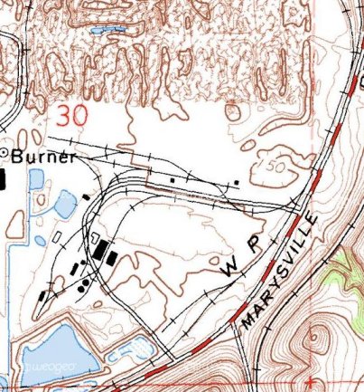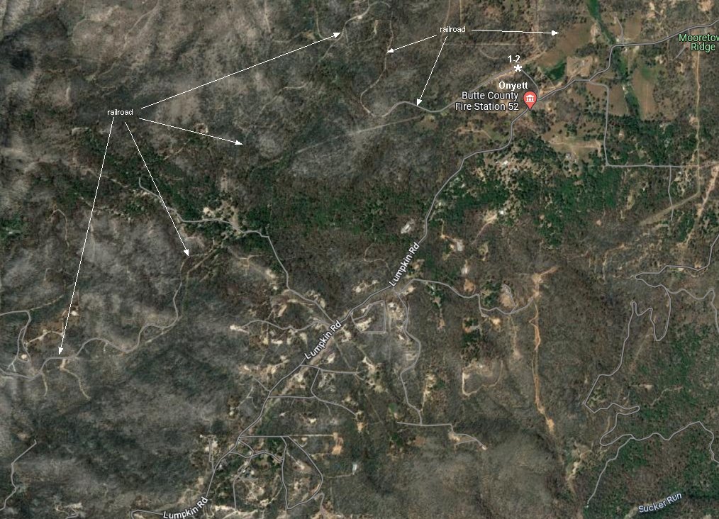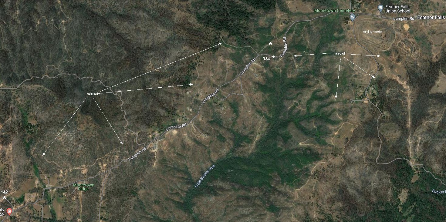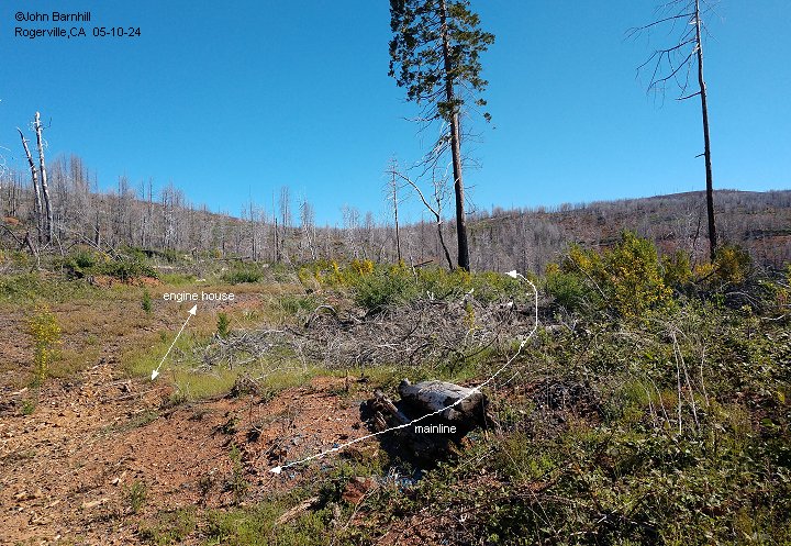 climbed into view below the mill yard after hearing the toot of the horn or whistle if the Shays were being used as it crossed Lumpkin Road down the hill on it’s return from Bidwell Bar. We’d then race along side as