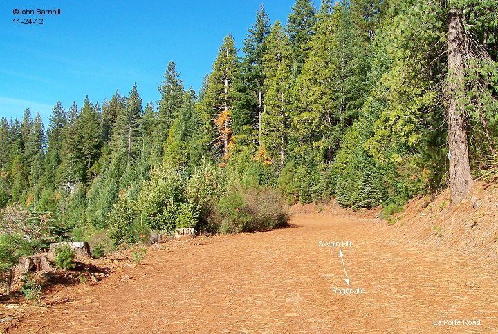 La Porte Road. Just north of the road junction, the line joins La Porte Road heading towards Swain Hill.