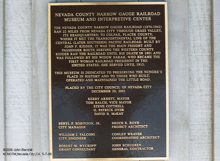 2. Plaque located at the Northern Queen Inn's Nevada County Traction on Railroad Ave, Nevada City.