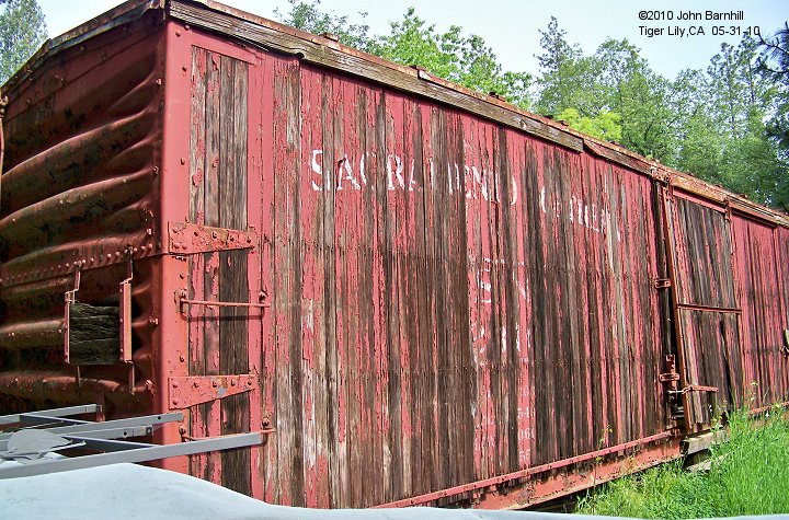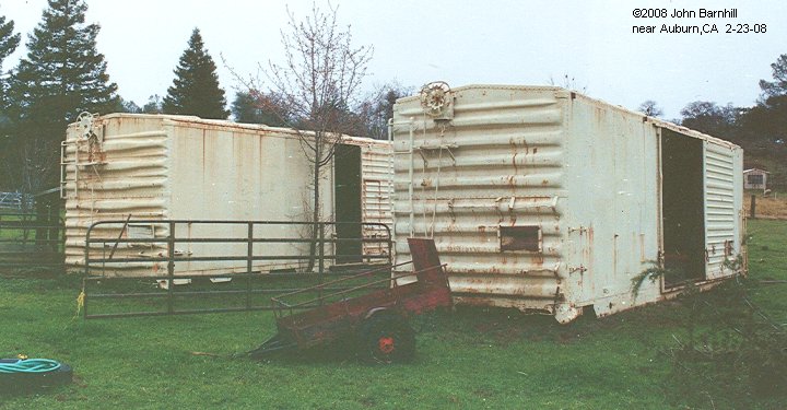 15.-16. These two boxcars are located on Oak Hill Road in Tiger Lily,CA along with Sac Northern #MW02310.