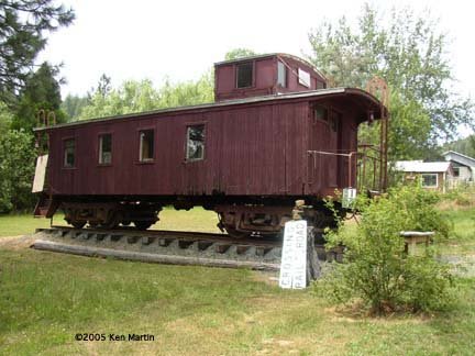 5. Ex CB&Q caboose, possibly #13765, at Brownsville,CA. (Ken Martin image)