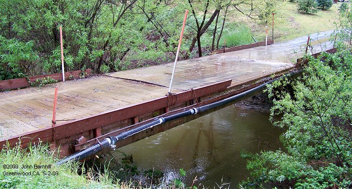 9.- 10. These two ex railroad cars serve as bridges across Greenwood Creek in Greenwood,CA.