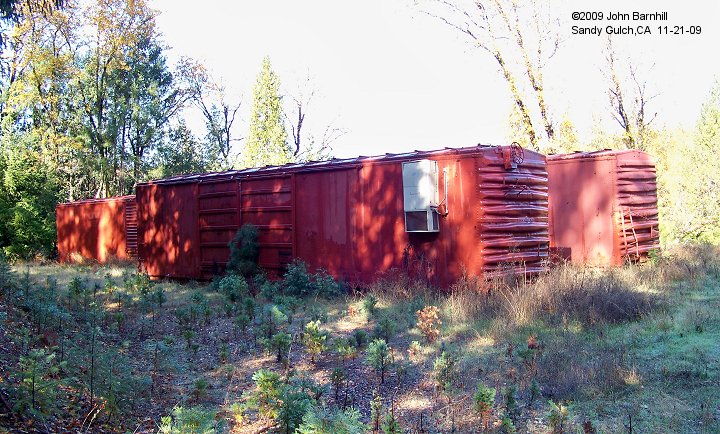 14. These boxcars are found between Sandy Gulch and West Point,CA on Highway 26.