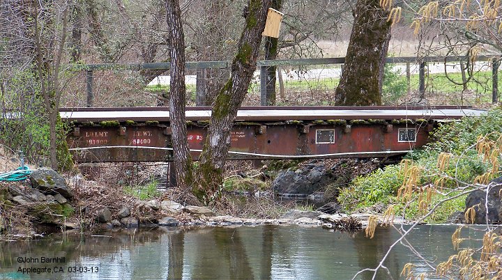 13. Ex bulkhead flat SP #508093 has become a bridge over Canyon Creek near Dutch Flat,CA.