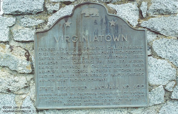 3. Plaque at site of Virginiatown near Newcastle,CA mentions one of California's earliest railroads.