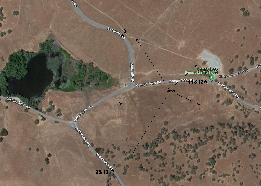 11.-13. Swinging through a big curve on several fills, the line crosses Campo Seco Road near the equestrian trailheand