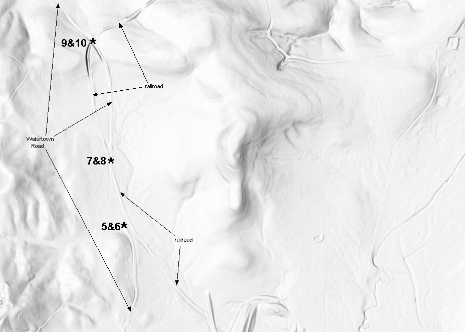 9.-10. A beautiful cut exists where the line crosses eastward back over Watertown Road.