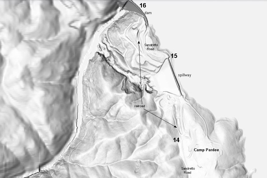 14. The line diverges from Sandretto road just below Camp Pardee.
