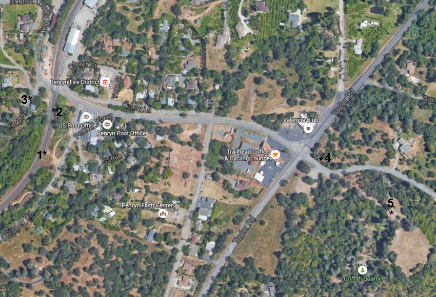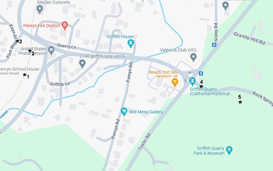 1. A spur to the Griffith granite quarry leaves the mainline here, follows English Colony Way, and crosses Taylor Road to the quarry itself.