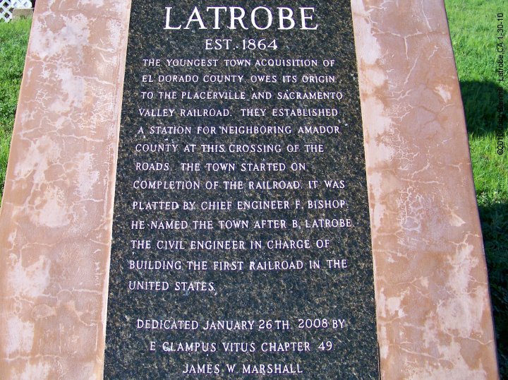 4. Plaque near the firestation in Latrobe. The line turns northerly from here and roughly follows South Shingle Rd to Shingle Springs,CA.