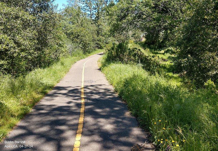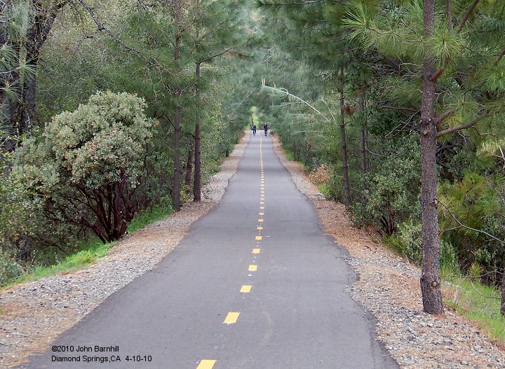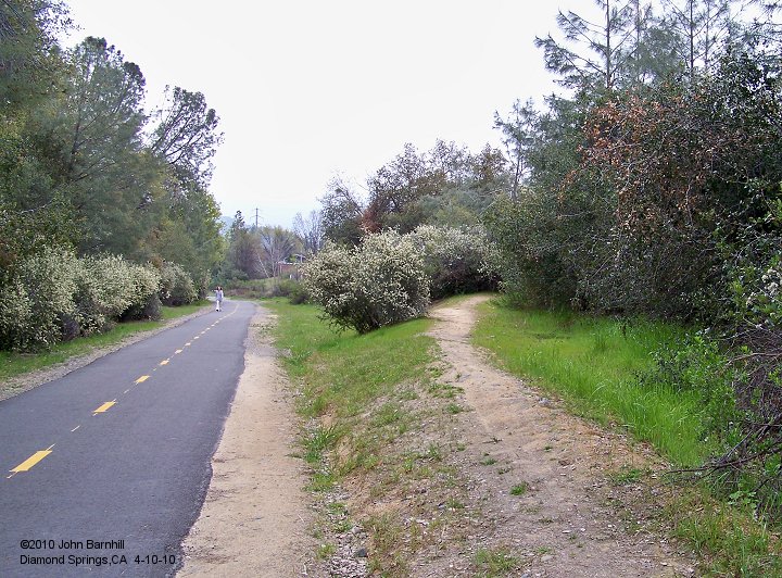 1. Starting at Diamond Springs, the right-of-way has been paved for multipurpose uses. The metal building stands on the site of the old SP depot.