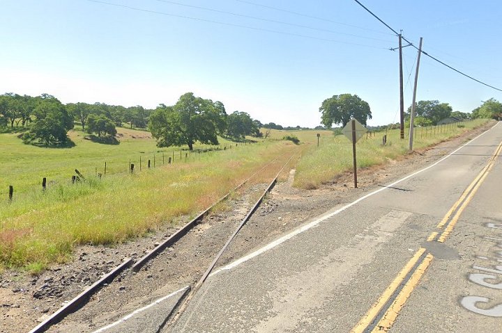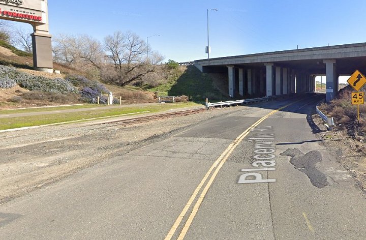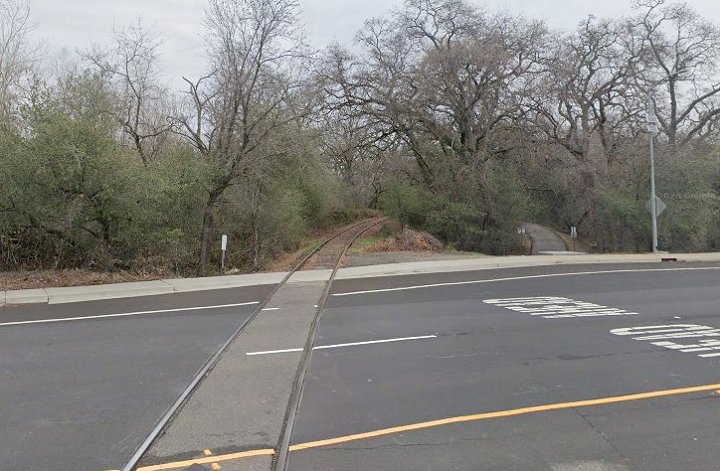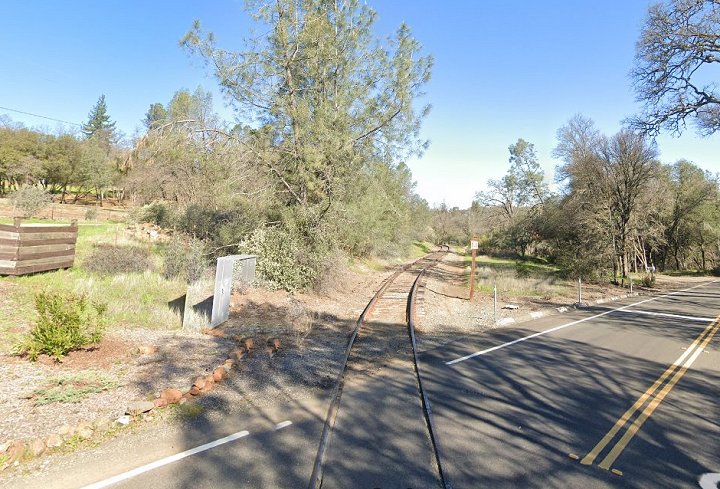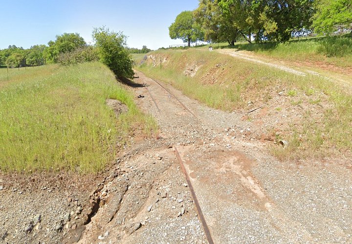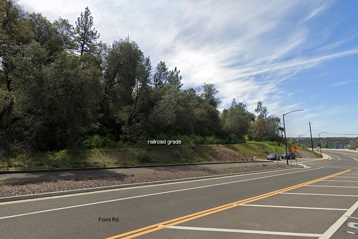 9. Ducking railroad east under Highway 50. Google 2023 street view.