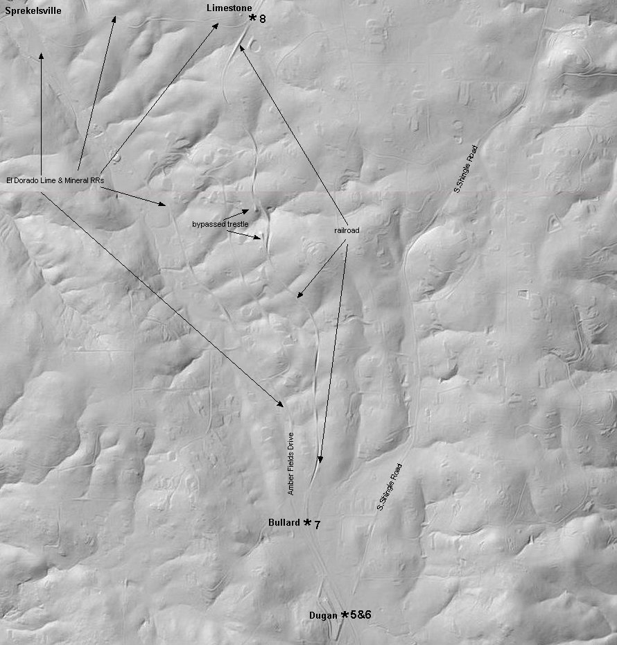 8. A bit further east on the line, Limestone was the interchange with the original El Dorado Lime and Mineral narrow gauge railroad.