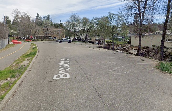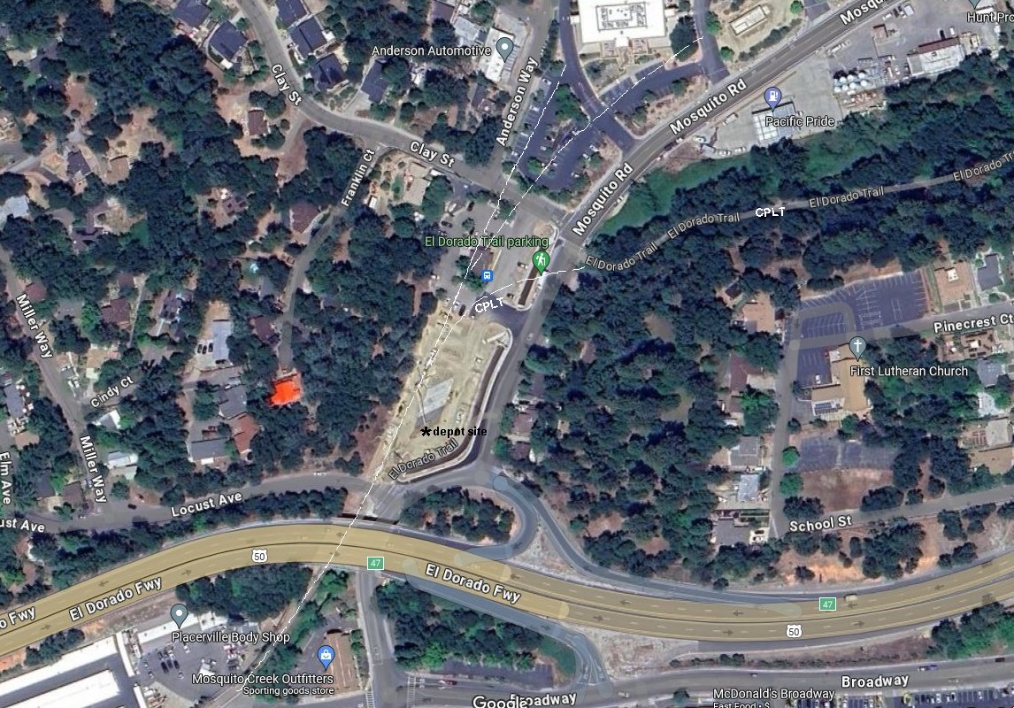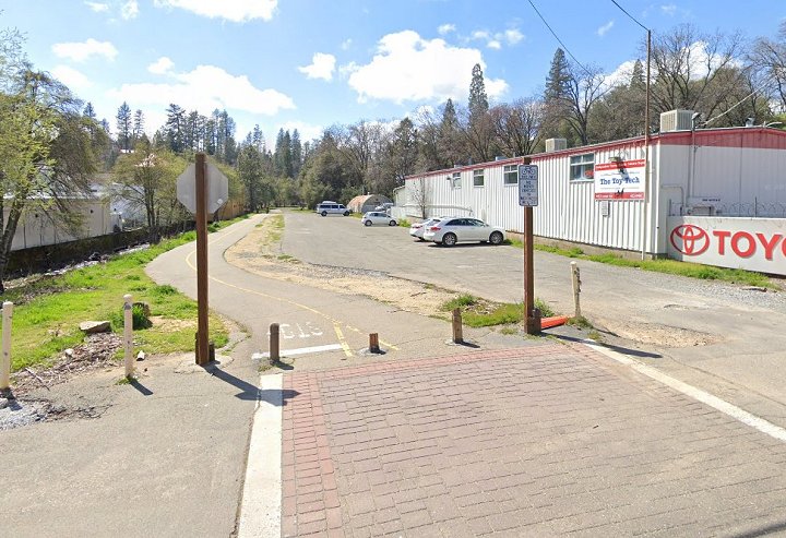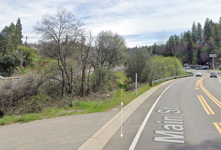 3. Eastward view along Main St where line crosses Hangtown creek. Google street view.