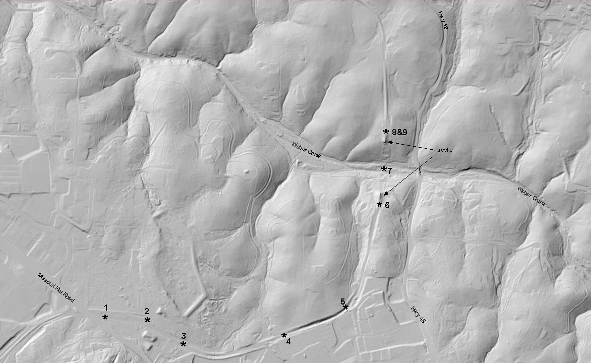 6.-8. The line crosses Weber Creek next on a huge steel trestle. New railings have been added along with an overlook