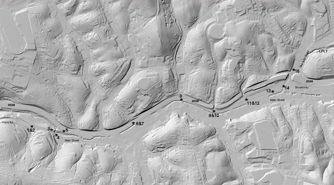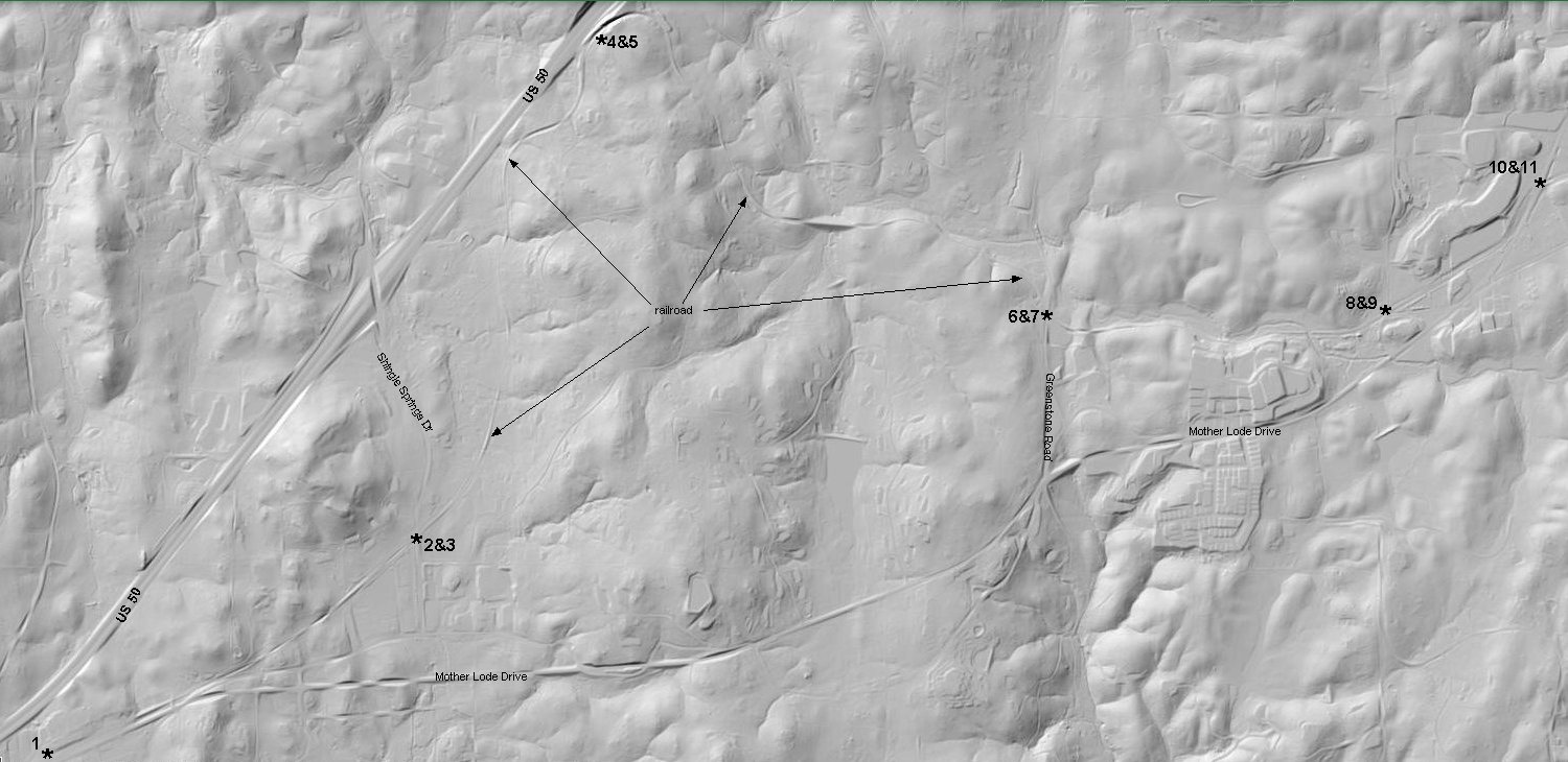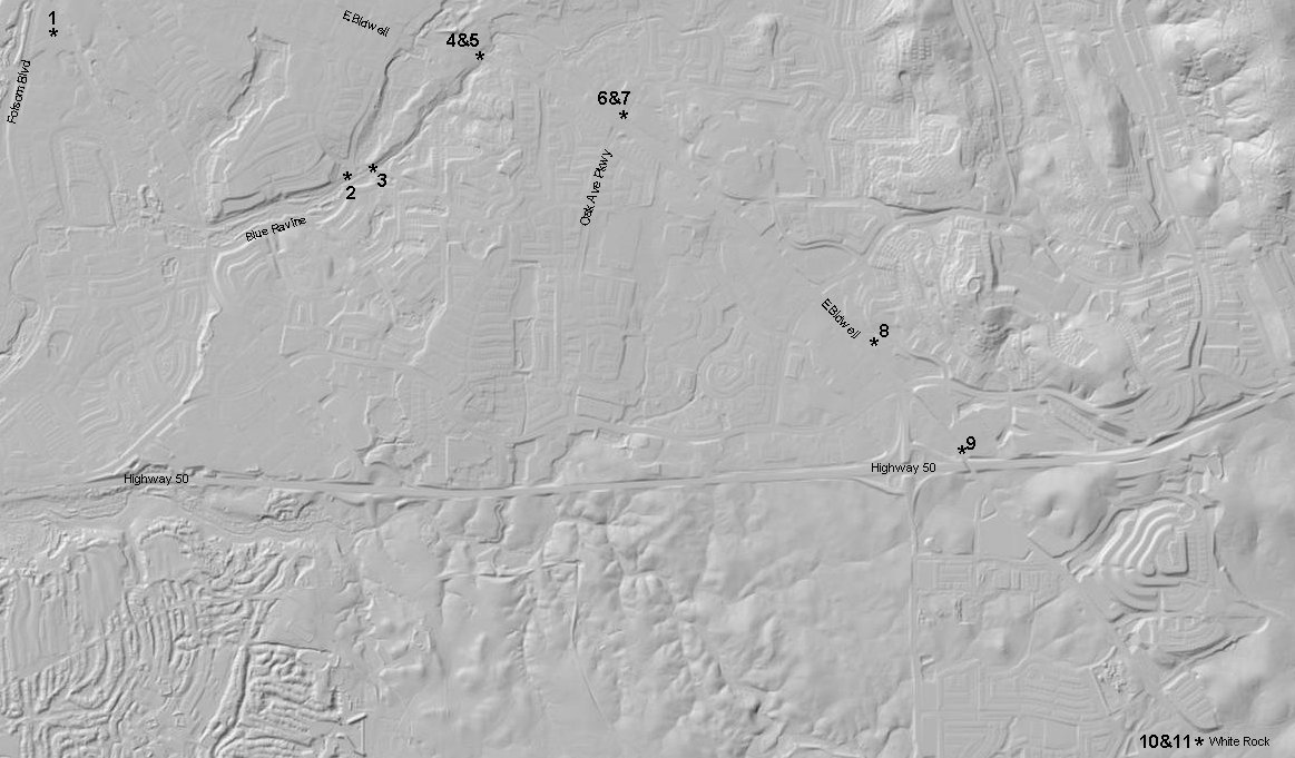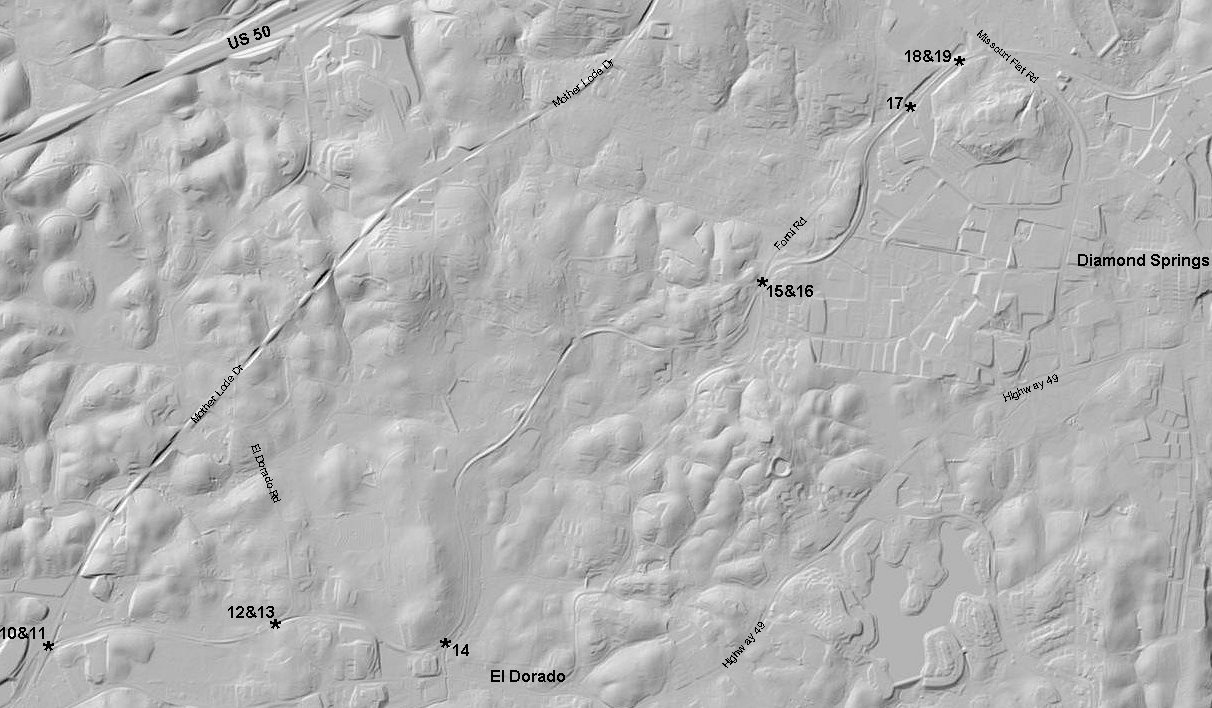 13.-14. Diamond Springs Google satellite and USGS Lidar marked with photo locations.