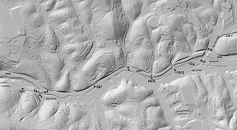 11.-12. Dugan to Limestone Google satellite and USGS lidar views marked with photo locations.