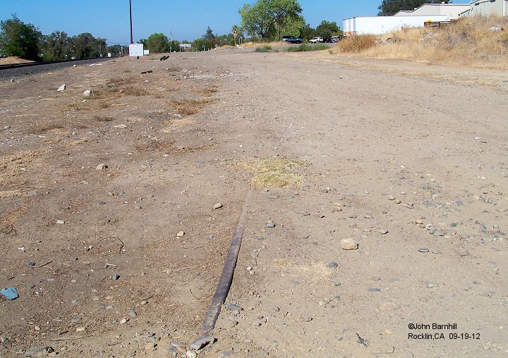 5. Looking south across Pacific. If one looks closely at the base of the large rocks across the street, there is a piece of exposed rail to mark the spur's location.