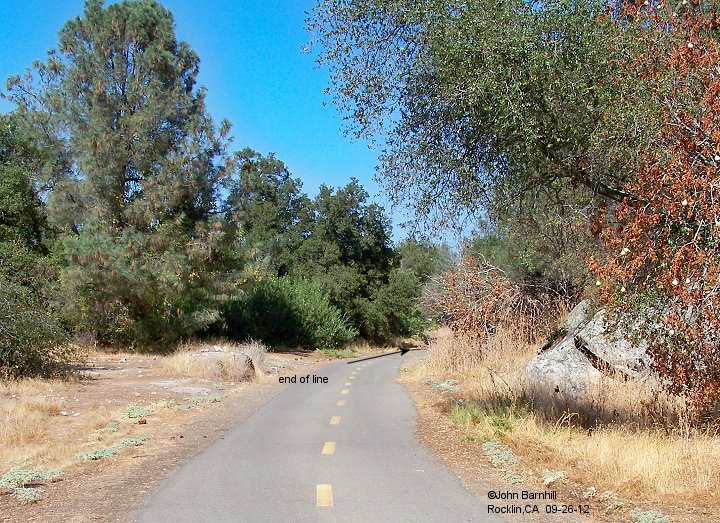 with a couple side spurs and eventually passes along the north side of the Rocklin Cemetary.