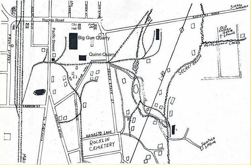 Rocklin had up to 68 granite quarries and many of them were once served by rail, the primary spur of which crossed Pacific St just west of Rocklin Rd.