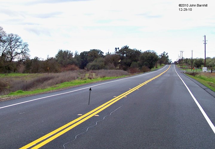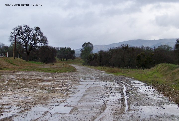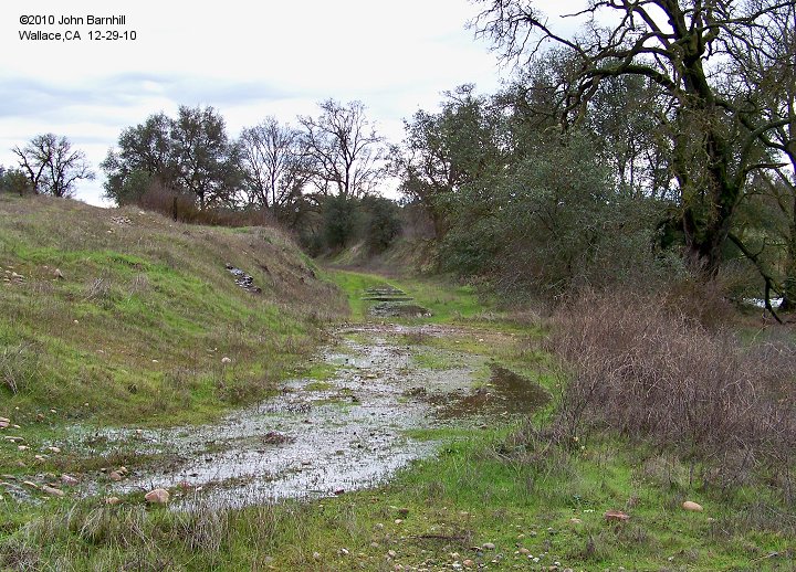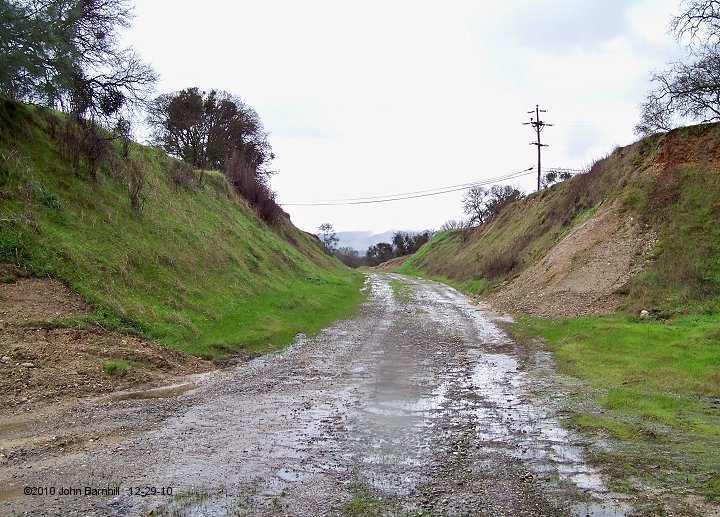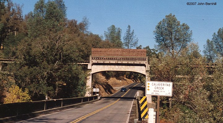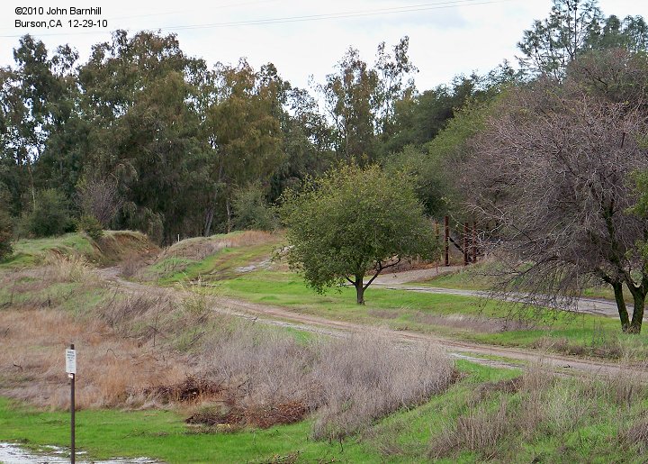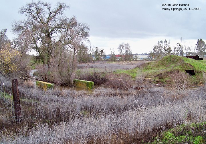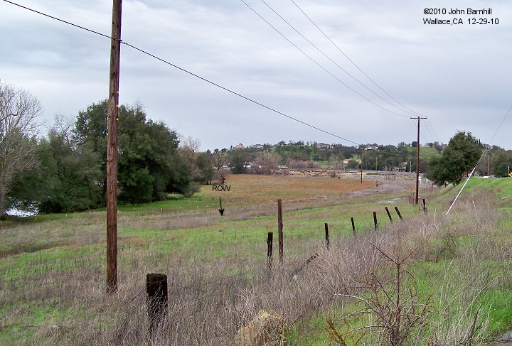 This line was completed as a narrow guage from Bracks Landing to Valley Springs in 1885. Three short years later the Southern Pacific took over. It remained narrow guage until 1897 with equipment supplemented from SP's other narrow guage operations. In 1926 the line was extended to a cement plant near San Andreas. This plant shut down in 1984 and the line fell into disuse except for storage at times. The rails themselves were finally taken up on the eastern end around 1998.