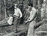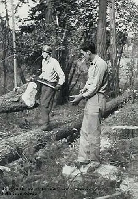 17. Joe Robert Allen and Leon Marvin Allen working in the woods. Circa early to mid '50s. (Kathie Carden Collection)