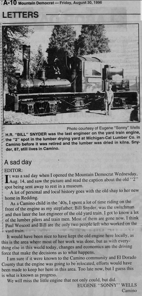 2. #1:2 in her previous life as Swayne Lumber Co #1 in Oroville, 1931. (Marc Reusser Collection)