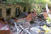 1. This is the car shops remains. 2. Nearby is the stone turntable. 3. Site of the brow log where the loads were dumped from the log cars into the pond. 4. Here is the remains for a boiler mount. 5.-6. Views of the dry kiln heater remnants.