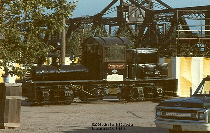 retired 1951, placed on display at Camino,Ca in 1953, (made CCN appearance), (Railfair '81 appearance), to Turtle Bay Museum,Redding,CA |